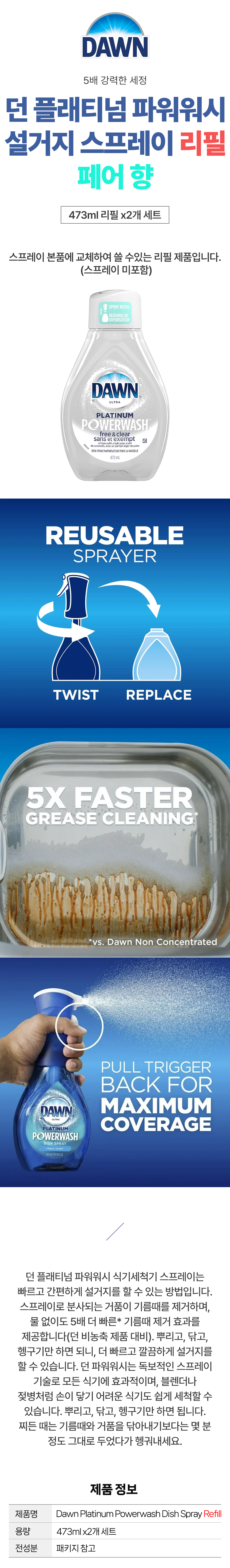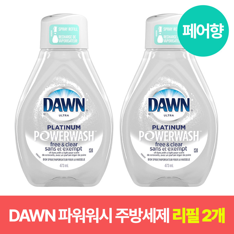 던 DAWN 플래티넘 파워워시 설거지 주방 세제 스프레이 리필 페어향 473ml 2개세트
