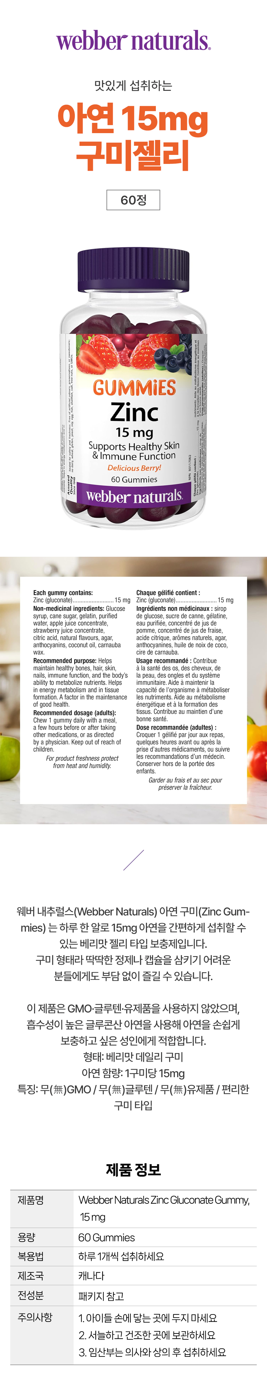 웨버내추럴스 아연 15mg 구미젤리 60정 간편히 섭취하는