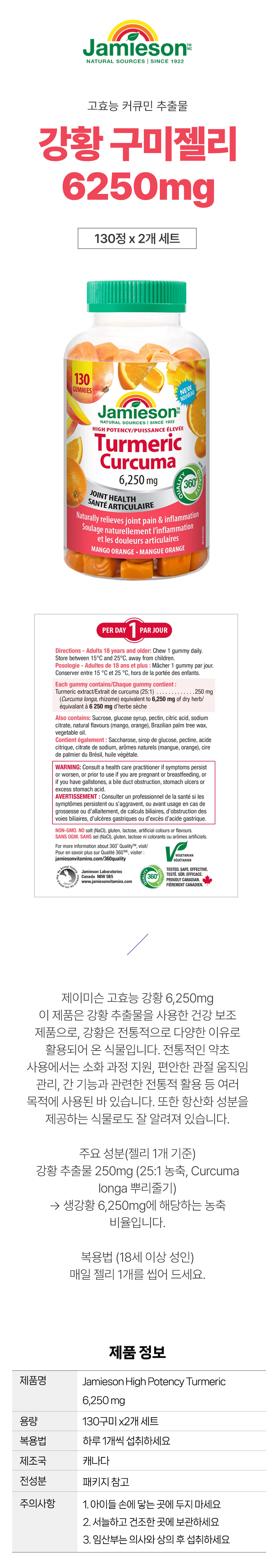 자미에슨 강황 구미젤리 6250mg 130정 2개세트 캐나다 코스트코