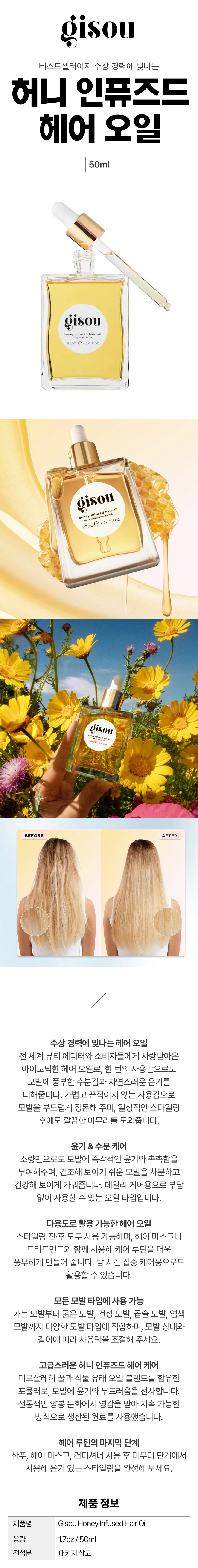 Gisou 기슈 허니 인퓨즈드 헤어 오일 50ml