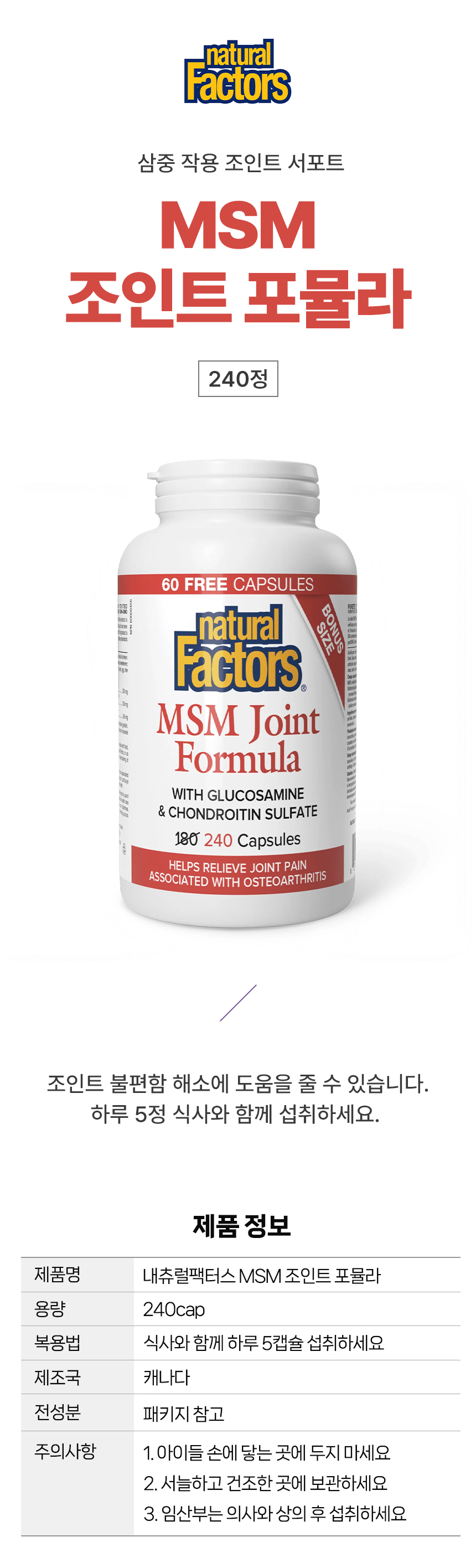 내추럴팩터스 글루코사민&MSM 240정