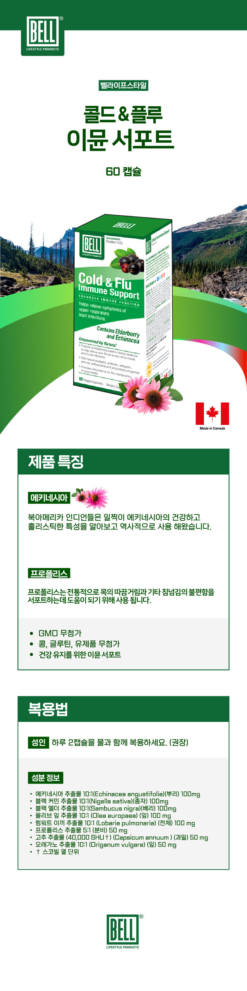 벨 콜드앤플루 면역 서포트를 위한 엘더베리약초 60정