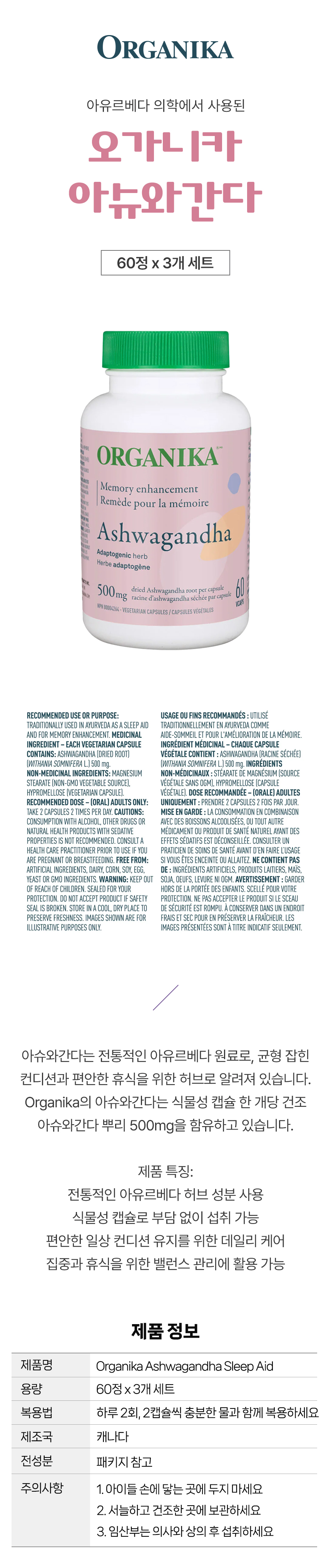 오가니카 아슈와간다 아쉬와간다 60정 3개세트 캐나다 코스트코